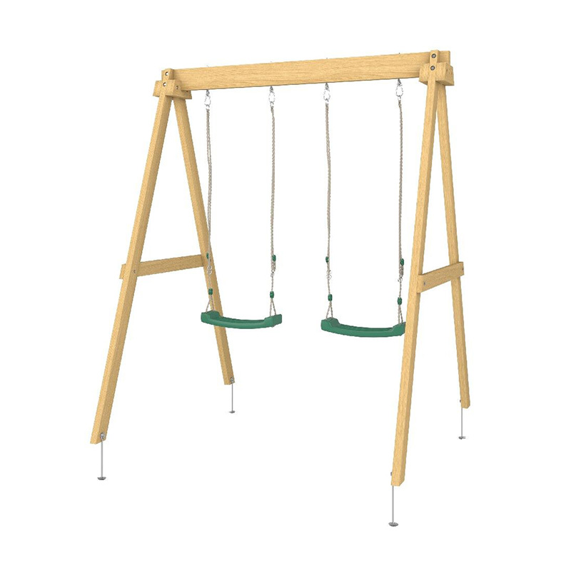 Leis an swing swing Swing Swing Swing Swing Swing Swing Swing beidh do leanaí ag dul ar eachtraí spreagúla. Tá cónascaire swing solúbtha speisialta ag an luascán adhmaid seo, a ghlacann ionad na gcónascairí plaisteacha agus miotail atá ag teastáil le haghaidh adhmaid bhabhta. A bhuíochas leis an gcónascaire luascáin seo is féidir an luascán dúbailte a athrú go héasca ina luascán amháin le bhíoma atá beagán ag dul i léig. Ar an deireadh, is féidir le do eachtránaí beag glan dreapadóireachta nó luascán moncaí a chrochadh. Buntáiste eile is ea go n -oireann an tacar luascáin chobhsaí i ngairdíní níos lú mar gheall ar a dhearadh fionnuar.