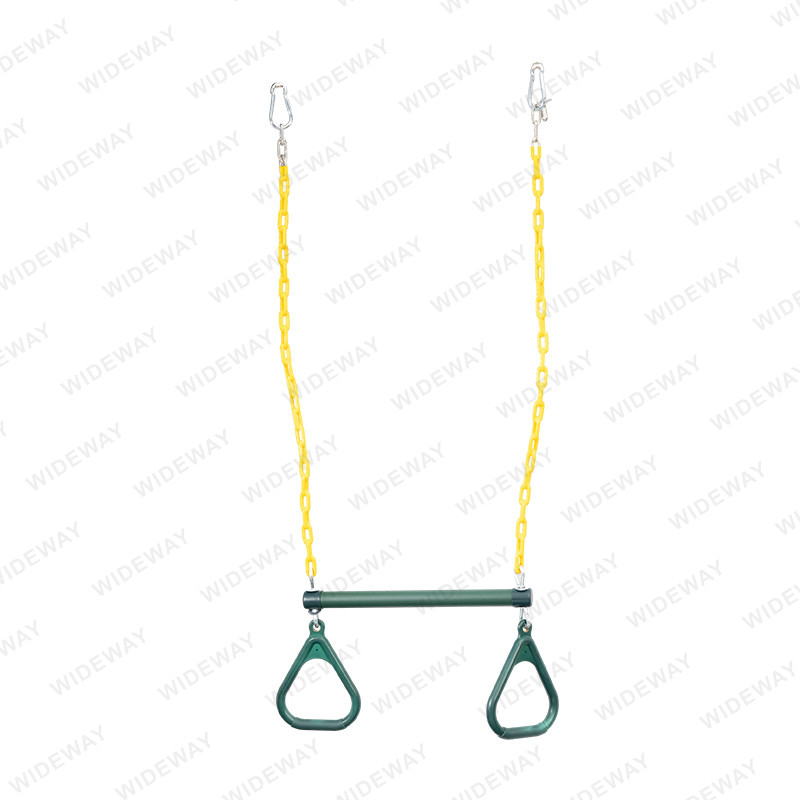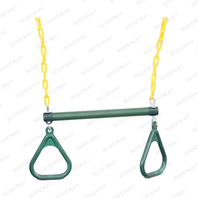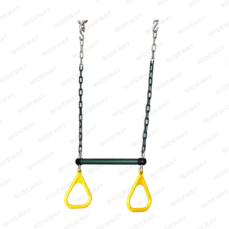 Gnéithe an Trapeze Bar & Rings for Swing Set dearadh sturdy agus compordach a sholáthraíonn an tacaíocht uasta agus cobhsaíocht. Tá sé foirfe do leanaí a bhfuil grá acu a imirt agus swing ar an gclós súgartha. Tá an táirge foirfe freisin do dhaoine fásta ar mian leo aclaíocht a dhéanamh agus a leibhéil folláine a fheabhsú trí úsáid a bhaint as a meáchan coirp féin.